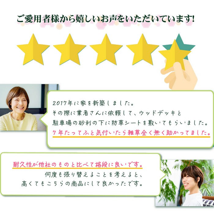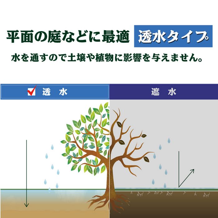 ・遮光率100%で栄養源の光を遮り、雑草が生えにくい